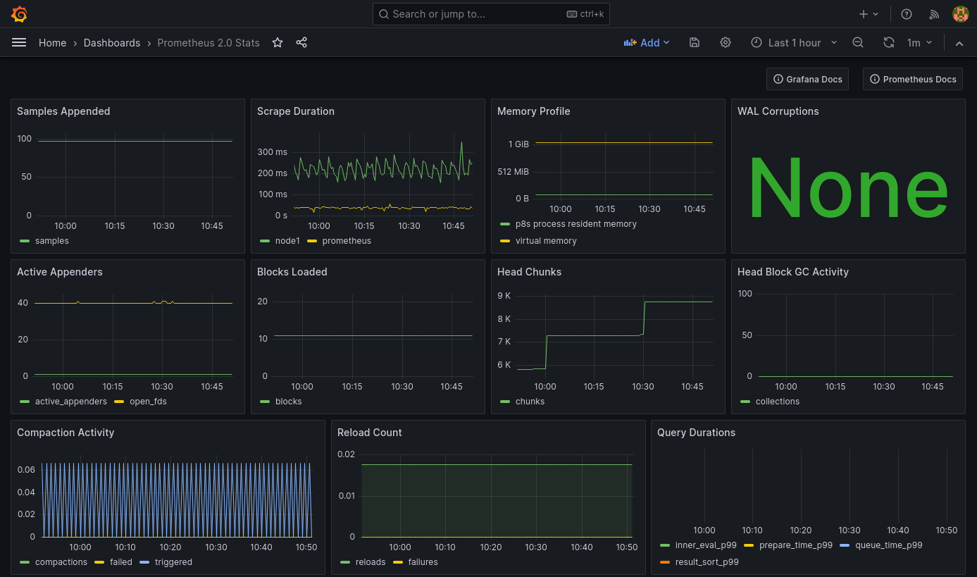 Now all that is left to do is to adjust the Grafana and Prometheus configuration so that I can see what I want to look at in the dashboard.